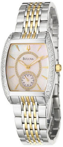 Stainless steel case and link bracelet with hidden deployment clasp. Mother of Pearl dial with gold tone luminous hands and hour markers. Genuine diamonds accent the bezel. Scratch resistant mineral crystal. Hidden deployment clasp. Precise Quartz movement. Water resistant. Case measures 30mm diameter by 7mm thick.Two Tone Stainless Steel Tonneau Mother Of Pearl Dial Diamonds Specifications | Sale - Review & Buy at Cheap Price